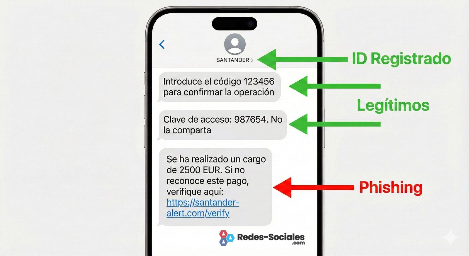 Y aquí entra el detalle que explica por qué esta modalidad es tan efectiva: el móvil agrupa los SMS por remitente. Si un atacante consigue que su mensaje llegue con el mismo alias que el de un banco, puede acabar dentro del mismo hilo donde ya hay comunicaciones legítimas. La escena es conocida: “bloqueo de cuenta”, “cargo sospechoso”, “actualiza tus datos”, un enlace y la prisa como combustible. El usuario no ve un remitente raro: ve el mismo de siempre.