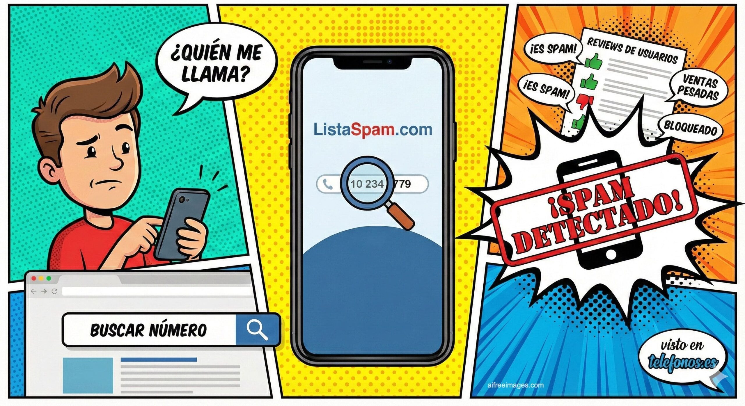 Listaspam.com es un buscador telefónico colaborativo: una web donde cualquier usuario puede escribir un número de teléfono y ver si otras personas lo han marcado como “spam”, “publicidad”, “posible estafa” o simplemente como una empresa legítima.
