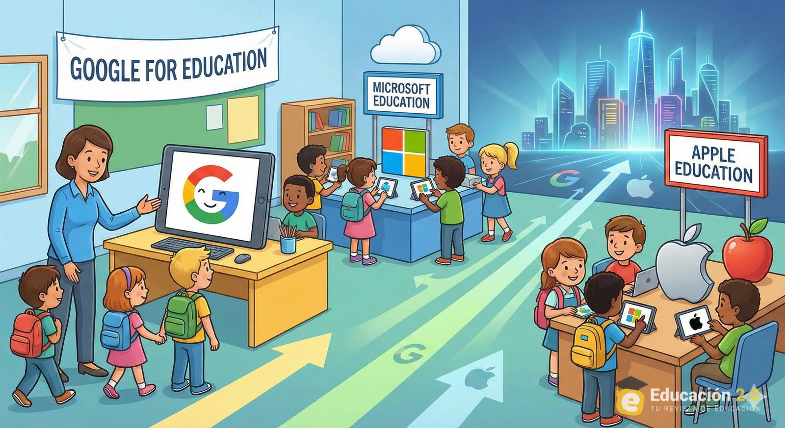 La discusión se entiende mejor con una idea clave: en la economía digital, el valor no está solo en vender un dispositivo, sino en controlar la identidad, el almacenamiento y el flujo de trabajo. El ordenador del alumno es importante, pero lo que decide el futuro es dónde vive su vida digital: su cuenta, sus documentos, sus permisos, sus formatos, sus rutinas.